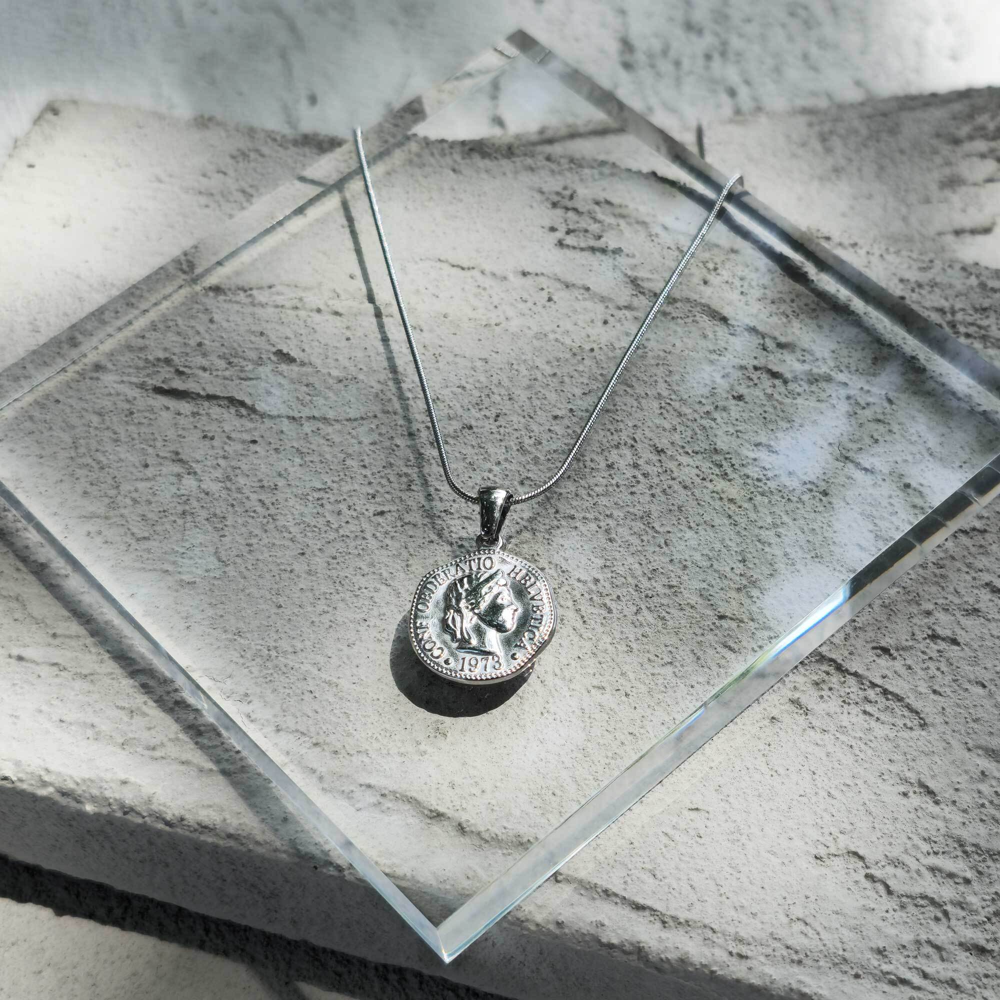 Coin necklaceは、硬貨のチャームが特徴のシルバーのネックレスです。独自のデザインは、カジュアルな日常使いから特別なシーンまで、幅広いスタイルに合わせることができ、あなたの個性を引き立てます。